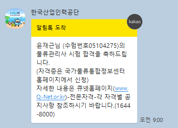 고등학교때 1번은 물류관련법규 과락으로, 1번은 평균점수에 미달해서 떨어졌었던 물류관리사 시험.