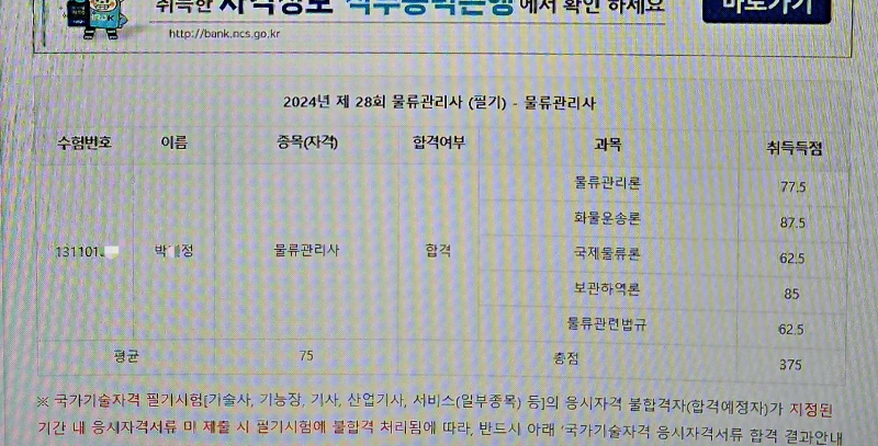 24년 9월 4일 평균75로 최종합격 확인했습니다.