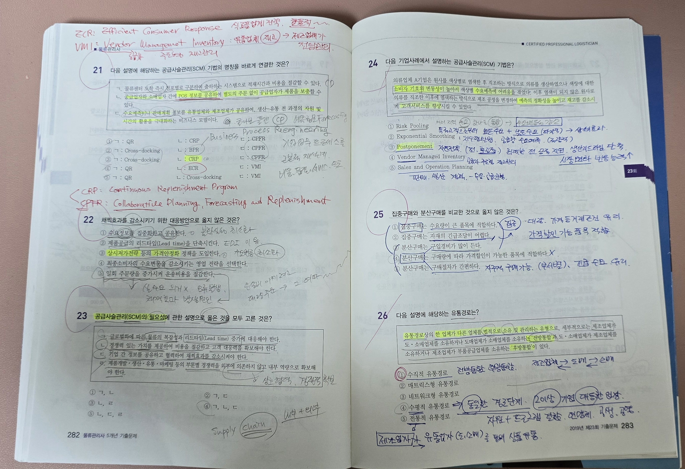 유통관리사와 겹치는 내용들도 있지만 국제물류론이나 물류관련법규처럼 처음 접하는 내용이 많아서 강의에 더 집중했고 요약본이라고 온라인 상에 돌아다니는 것들에 혹하기도 했지만 제 강의필기만한게 없더라구요. 시험 전날까지 필기노트만 열심히 보고 시험장에 갔네요. 시험 끝나고 돌아보니 시험에 딱 필요한 내용들로 채워진 판서였습니다. 세 분 강사님들 정말 감사합니다. 특히 유범진 강사님께서 강의만 믿고 쭉~~따라오면 된다고 굳건히 끌어주셔서 흔들리지않고 잘 버텼어요. 공부하고픈 의지를 불러 일으키는 강사님의 필체가 그립네요^^