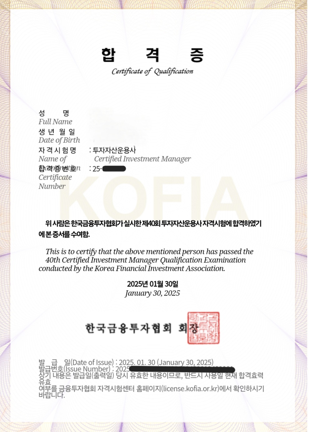 제40회 투자자산운용사 합격후기 (비상경계열)