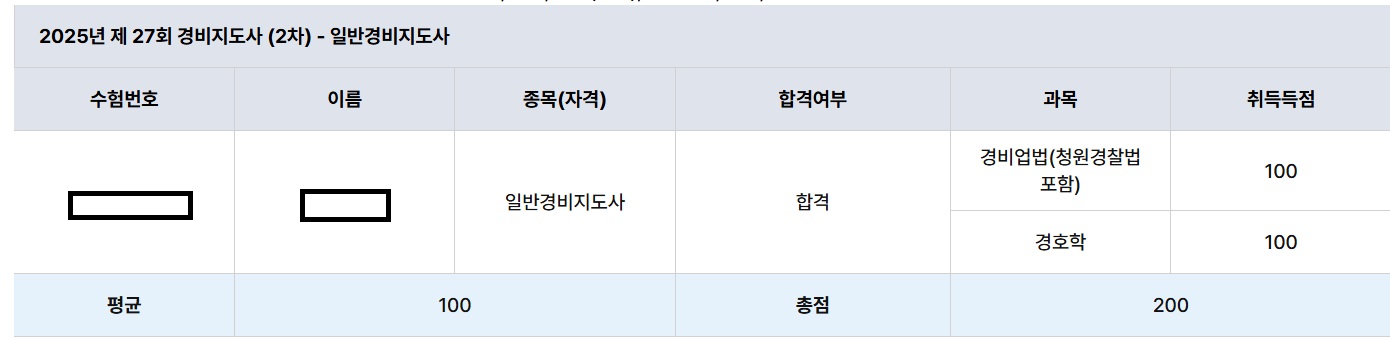 - 시험결과 : 경비업법(100점), 경호학(100점)
