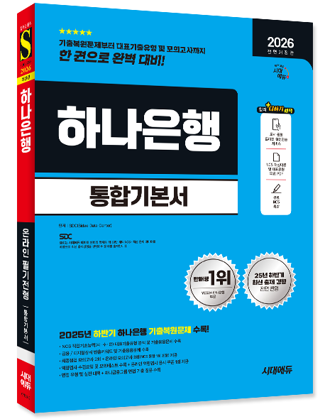 『2026 최신판 시대에듀 All-New 하나은행 온라인 필기전형 통합기본서』는 첫째, 2025년 하반기 하나은행 기출복원문제를 수록하여 최신 출제 경향을 한눈에 파악할 수 있도록 하였다. 둘째, NCS 직업기초능력(의사소통·수리·문제해결) 대표기출유형과 기출응용문제를 수록하여 체계적인 학습이 가능하도록 하였다. 셋째, 금융/디지털상식의 빈출키워드별 이론과 기출응용문제로 온라인 필기전형을 완벽하게 준비하도록 하였다. 넷째, 최종점검 모의고사 2회분 및 온라인 모의고사 3회(NCS 통합 1회)와 함께 도서 동형 온라인 실전연습 서비스를 제공하여 실전과 같은 연습이 가능하도록 하였다. 마지막으로 역량검사, 면접 기출 질문과 온라인 역량검사 1회를 수록하여 한 권으로 하나은행을 포함한 하나금융그룹 채용 전반에 대비할 수 있도록 하였다. 본서가 하나은행 온라인 필기전형을 준비하는 여러분 모두에게 합격의 기쁨을 전달하기를 진심으로 기원한다.