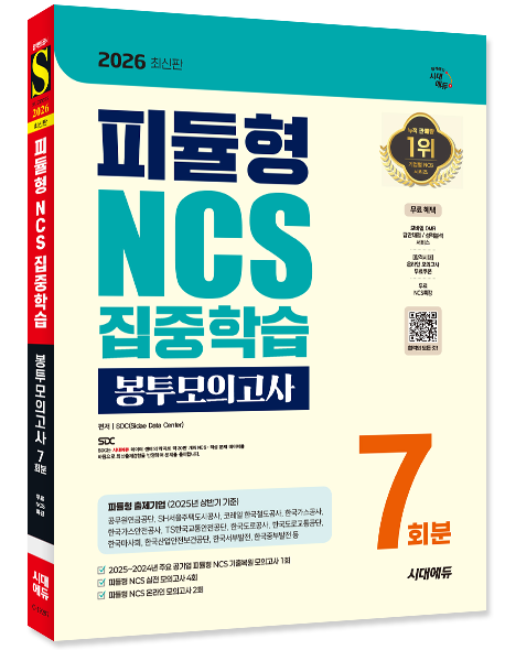 2026년 공사공단 채용을 대비하기 위해 시대에듀에서는 피듈형 NCS 맞춤형 문제로 구성한『2026 최신판 시대에듀 피듈형 NCS 집중학습 봉투모의고사 7회분』을 출간하였다. 2025~2024년 주요 공기업 피듈형 NCS 기출복원 모의고사를 수록하여 출제경향을 확인할 수 있도록 하였으며, 실전 연습이 가능한 피듈형 NCS 모의고사를 수록하여 막판 10점을 UP시킬 수 있도록 하였다. 또한, 상세한 해설을 수록하여 혼자서도 학습이 가능하도록 하였으며, 온라인 모의고사를 무료로 응시할 수 있는 쿠폰을 발급하여 피듈형 문제 유형에 대한 연습과 함께 자신의 실력을 최종 점검할 수 있도록 구성하였다.