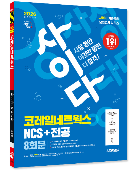 이에 시대에듀에서는 코레일네트웍스 판매량 1위의 출간 경험을 토대로 『2026 최신판 시대에듀 All-New 사이다 모의고사 코레일네트웍스 NCS+전공』을 출간하였다. 최신 출제 경향 맞춤 NCS 모의고사 6회분과 전공 모의고사 2회분을 수록하고 온라인 모의고사 2회분을 제공하여 자신의 실력을 점검하고 향상시킬 수 있도록 하였다. 또한, 정답과 오답에 대한 상세한 해설을 통해 혼자서도 학습이 가능하도록 하였으며, 코레일네트웍스 인성검사 및 면접 가이드를 통하여 다각도로 채용을 대비할 수 있도록 하였다.