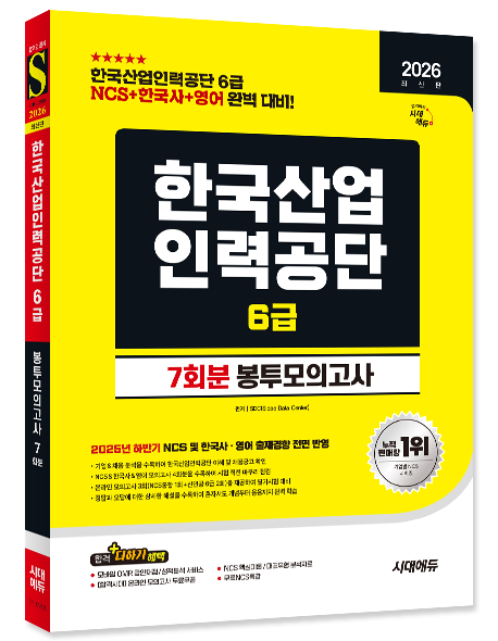 한국산업인력공단 6급 합격을 위해 시대에듀에서는 채용을 대비하여 한국산업인력공단 6급 맞춤형 문제로 구성한 『2026 최신판 시대에듀 한국산업인력공단 6급 NCS&한국사&영어 봉투모의고사 7회분』을 출간하였다. 철저한 분석을 통해 실제 유형과 유사한 실전 모의고사를 4회분 수록하여 시험 직전 자신의 실력을 점검할 수 있도록 하였다. 또한 상세한 해설을 수록하여 혼자서도 학습이 가능하도록 하였으며 온라인 모의고사를 무료로 응시할 수 있는 쿠폰을 발급하여 한국산업인력공단 6급 문제 유형에 대한 연습과 함께 자신의 실력을 마무리 점검할 수 있도록 하였다.